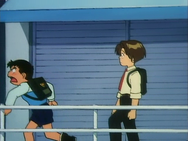 Próxima cena, Menino se chama "Toshi Tsukikage". Gritando e Chamando o seu amigo para sair.