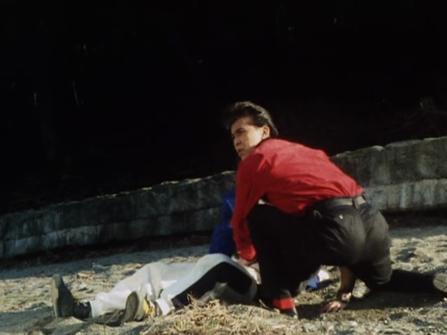 Yusuke se lembrando... Cena do episódio 01, quando o Gô e os seus ex-estudantes indo para nave. Kempu atiraram no Takuji e Mari que foram mortos. Volt que se ameaçaram a Academia island.