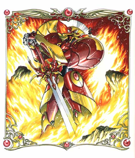 | Rayearth na forma de Um Lobo com Juba flamejante. |