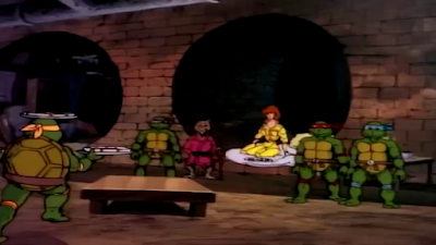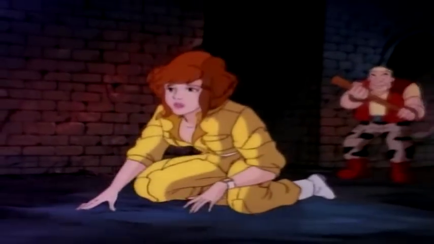A Repórter April O'Neil está sendo perseguida pelas Gangues em Nova York, ela entrou dentro do Esgoto. Ela está cercada. Surgem as Tartarugas ninjas, lutando contra as Gangues. A April foi salva por eles.